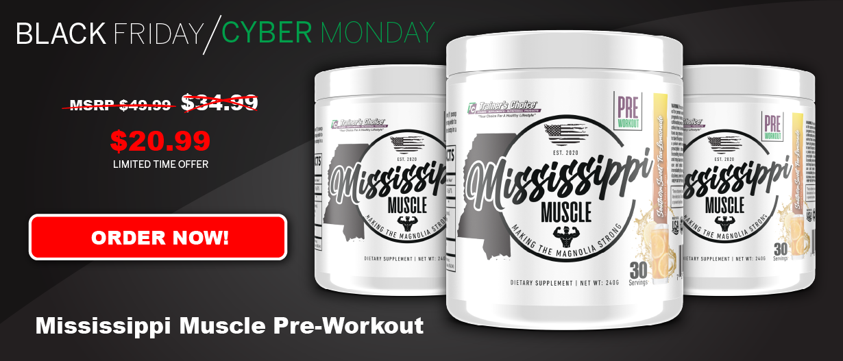 Mississippi Muscle and Trainer's Choice have teamed up to bring you the "Mississippi Muscle Series" of Sports Supplements! Our products are formulated with cutting edge ingredients to help elevate your Performance inside and outside the gym!